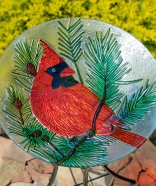 × 67 inches tall pinecone shaped birdhouse stake with little bird on a side in antique copper distressed finish with patina accents Pinecone Shaped Copper Color Birdhouse Stake $80.95