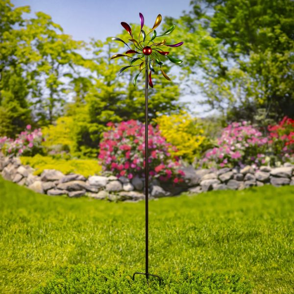 54 inch tall metal garden stake with welcome sign, cockatoo and bells