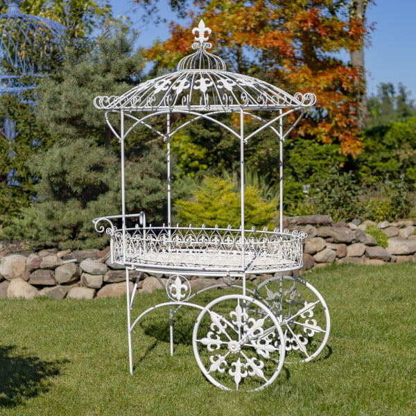 Treat yourself like the royalty you are with the “Antoinette” Large Parisian Style Iron Carriage from Lesera. Expertly crafted from high quality iron, this carriage is both decorative and functional, complete with side planters, gold fleur-de-lis accents, and two inner benches with ample sitting space. With its gorgeous architecture and intricate details, the “Antoinette” Carriage is guaranteed to make you feel like a true King or Queen!