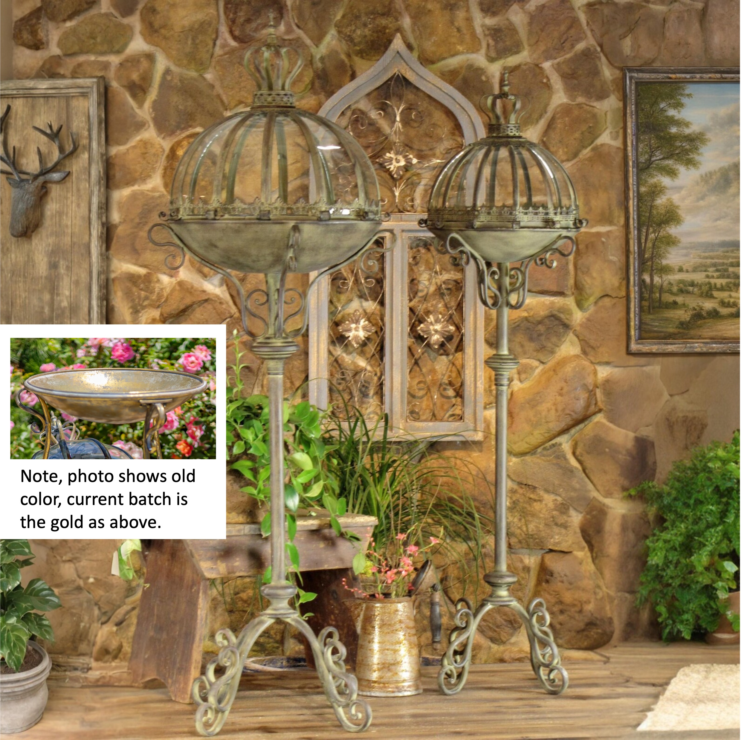 S/2 Gold Standing Iron & Glass Dome Lanterns/Terrariums “Domme 1437”