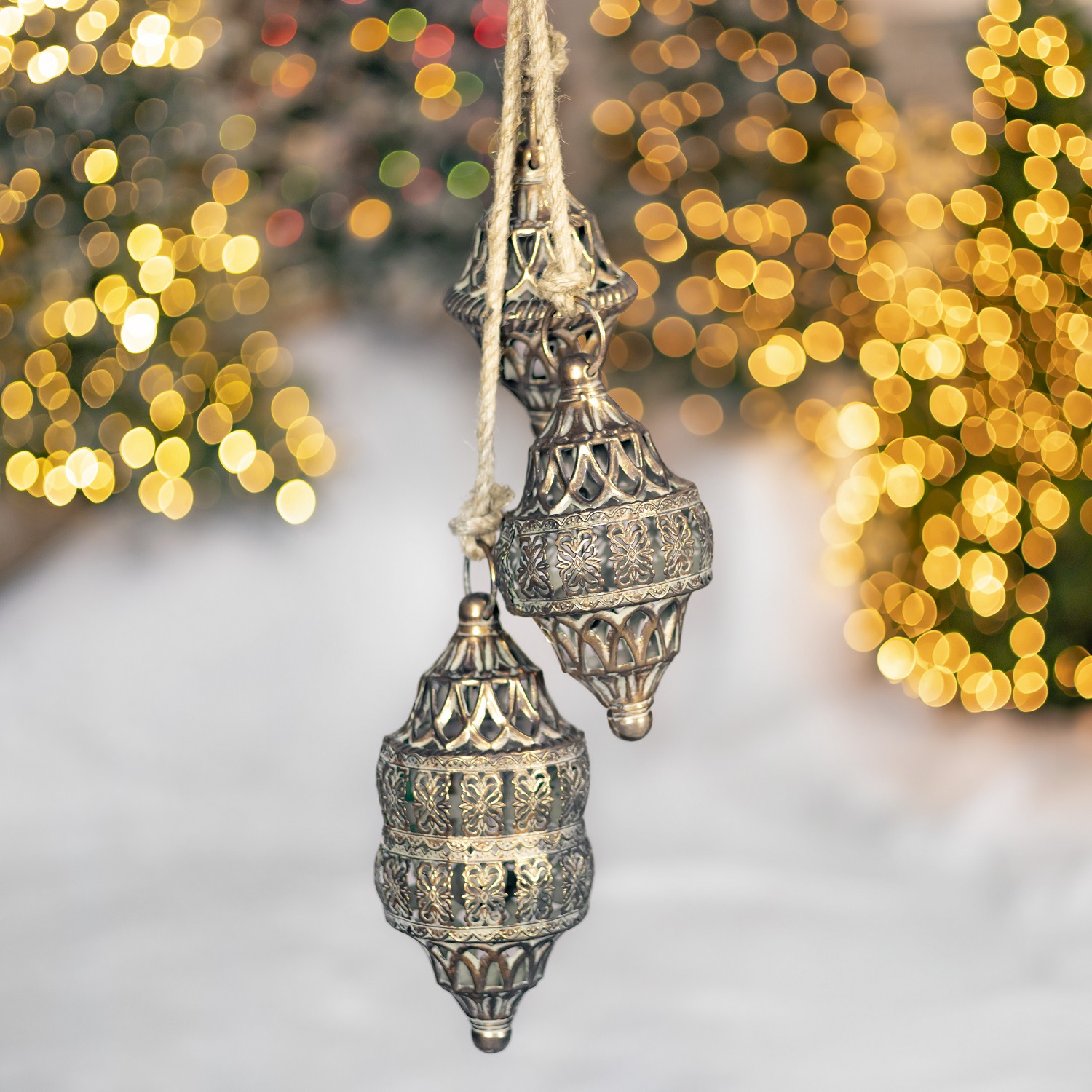 7 Assorted Hanging Three-Piece Iron Bell Cluster Decorations Antique Gold “Blanfordia Gold”